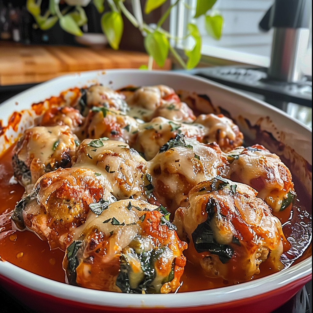 Baked Chicken Parmesan Meatballs are a deliciously easy dish that combines juicy ground chicken with rich parmesan and gooey mozzarella. These tender meatballs are baked to golden perfection, coated in marinara sauce, and topped with bubbling cheese. Ideal for busy weeknights or family gatherings, they promise a delightful dining experience everyone will love.