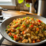 Riz complet aux légumes is a vibrant and wholesome dish that combines earthy brown rice with a medley of colorful vegetables, creating a delightful balance of flavors and textures. This easy-to-make recipe is perfect for busy weeknights or cozy family dinners. Each bite reveals the sweetness of roasted carrots, crisp bell peppers, and tender zucchini, making it a crowd-pleaser that will leave everyone asking for seconds!